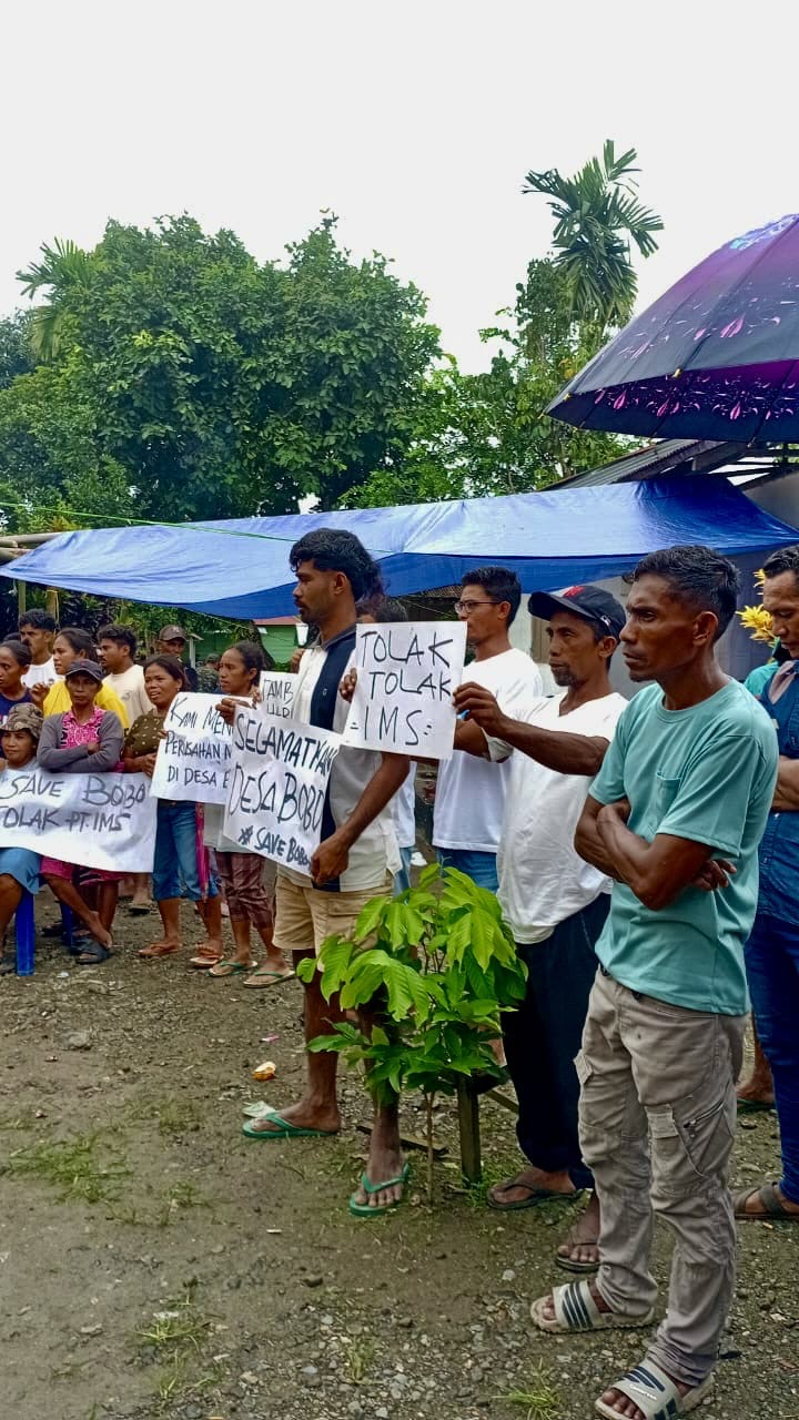 “Jadi kami menyatakan secara tegas dan bulat menolak kehadiran PT Intim Mining Sentosa (IMS) ataupun Karya Tambang Sentosa (KTS) di Desa Bobo. Kami menyerukan kepada seluruh pihak, termasuk pemerintah pusat dan daerah, untuk menghormati hak-hak warga di Desa Bobo dan menghentikan seluruh upaya pemaksaan operasi pertambangan di wilayah kami,” desaknya.