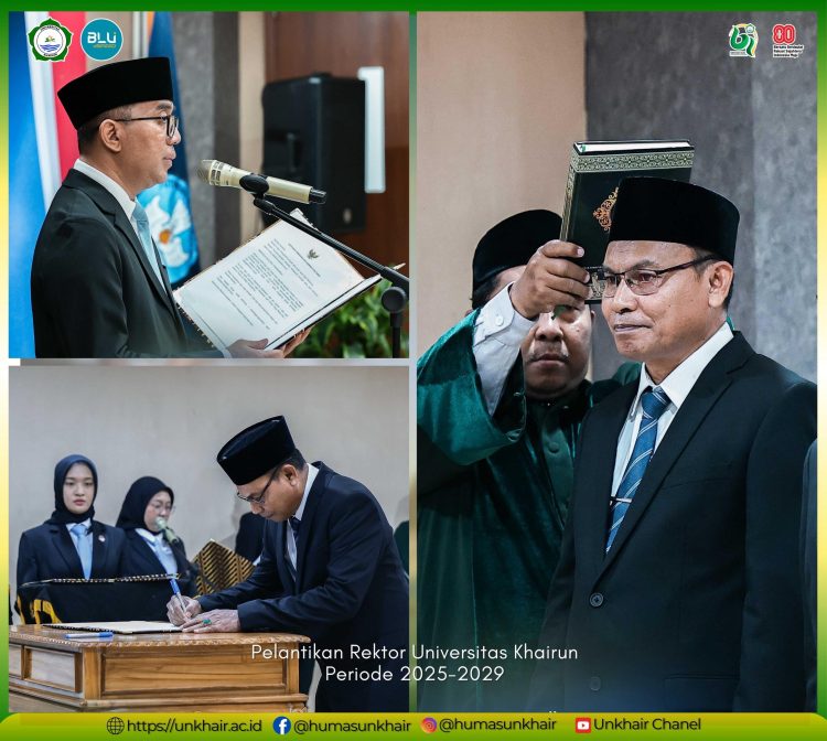 Prof. Brian turut menyampaikan apresiasi kepada Rektor Unkhair sebelumnya, Dr. M. Ridha Ajam, M.Hum, dan Dr. Drs. Beatus Tambaib, M.A, atas dedikasi selama menjabat.