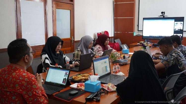 Kegiatan ini digelar secara hybrid di Ruang Rapat Kanwil Kemenkum Maluku Utara dan melalui Zoom Meeting diikuti Asisten II Bidang Administrasi Umum dan Kehumasan Pemkab Pulau Morotai, Marwan Sidasi, Kepala Bagian Hukum Soleman, perwakilan Dinas Sosial P3A, Stimulan Institute, Anggota DPRD Badan Legislasi Daerah, serta Tim Kerja Harmonisasi (TKH) Kanwil Kemenkum Malut.