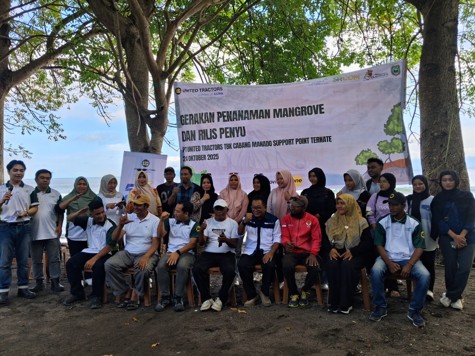 Halmaherapedia – PT United Tractors Tbk (UT) Cabang Manado Support Point Ternate melaksanakan kegiatan Gerakan Penanaman Mangrove dan Rilis Penyu di pesisir Pantai Kelurahan Tobololo, Kecamatan Ternate Barat, Kota Ternate, Jumat (24/10/2025).