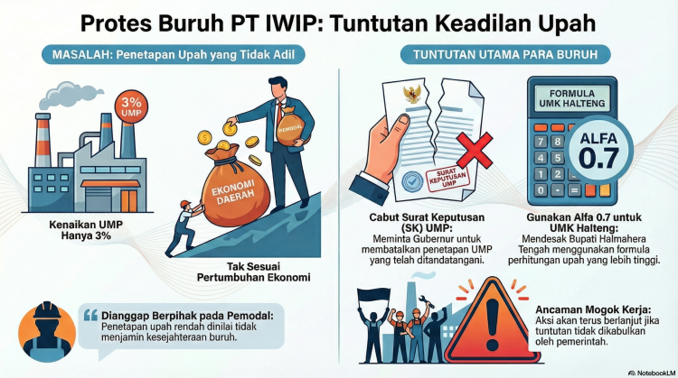 “Penetapan UMP/UMK tidak sesuai pertumbuhan ekonomi Malut. Kami minta surat penetapan (SK) UMP dicabut,” tegasnya saat dihubungi Halmaherapedia, Selasa malam (30/12/2025).