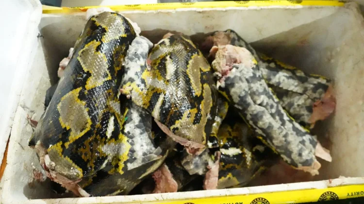 Saat pemeriksaan, petugas menemukan enam kotak berisi daging celeng tercampur potongan daging ular sanca dan kelelawar mati tanpa dokumen rahasia.