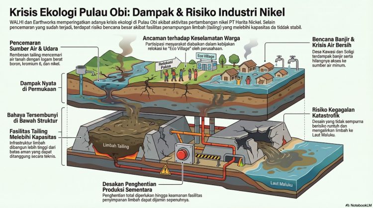 Krisis Ekologi Pulau Obi Dampak dan Risiko Industri NikelAdminMaret 30, 2026Headline, Video160 Dilihat Grafis ini diolah menggunakan mesin AI Noteboook LM Bom_Waktu_Limbah_Nikel_Pulau_Obi-mp3cut.net_ Post Views: 160 Jangan LewatkanTransformasi IAIN TernateIAIN Ternate akan Alih Status jadi UIN Sultan BaabullahPertamina Imbau Tak Termakan Isyu Kelangkaan BBMWALHI:Pemerintah Harus Perketat Pengawasan Tambang di Obi Kesultanan Ternate Siap Gelar Festival Ela-elaDaging Satwa Liar Dikirim dari Ternate ke Bitung