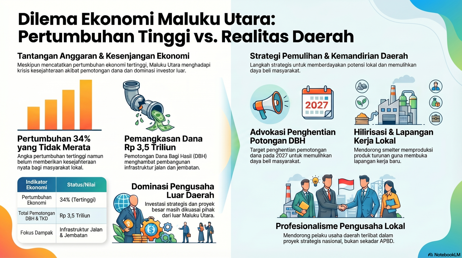 “Sebagian pemain dikuasai bukan orang Maluku Utara. Untuk investasi yang baru, kalau boleh, pengusaha daerah harus profesional, bukan seperti pengusaha proyek APBD,” ujarnya.